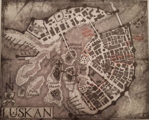 Leč je město občas označováno noblesně jako Město plachet, jde (minimálně historicky) o výspu pirátů, korupce a neřesti. Z jednoho pohledu by město mohlo vypadat jako zhoubné a nebezpečné pro svobodomyslný způsob života na jihu, ale z druhého úhlu se jedná o úspěšnou námořní obranu proti barbarským nájezdům z ostrovů, které tak dále neobtěžují jižněji položené města jako je Letohrad nebo Hlubina. V případě hrozby zelných kůží od Páteře světa je Luskan také první na ráně, před další civilizací.